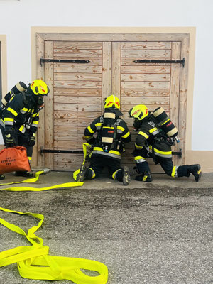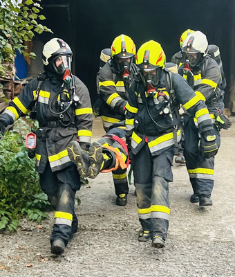 Mehrere Atemschutztrupps drangen in das verrauchte Gebäude vor. Gasflaschen wurden in Sicherheit gebracht, zudem wurden zwei eingeklemmte Personen (Dummies) vorgefunden, die mit hydraulischem Gerät befreit wurden. Auch der Fahrer eines Lkw befand sich noch im Gebäude. Er wurde gerettet und mittels Trage abtransportiert. Vielen Dank an die FF Damtschach für die Organisation der Übung und für die anschließende kulinarische Verpflegung. Ein Dank ergeht weiterhin an Kameradin Lena Poderznik (FF Damtschach) für die Bilder.