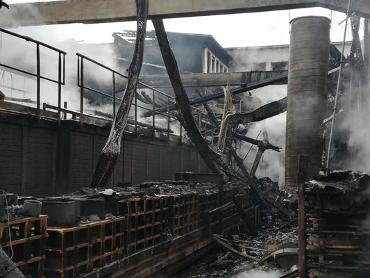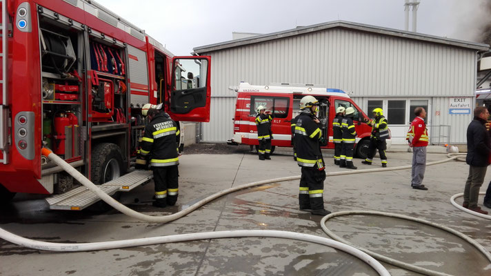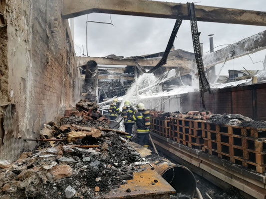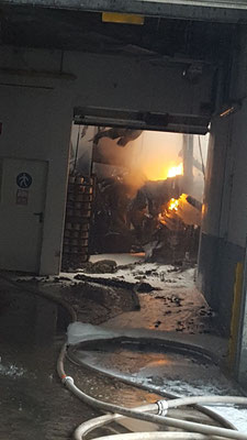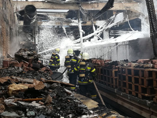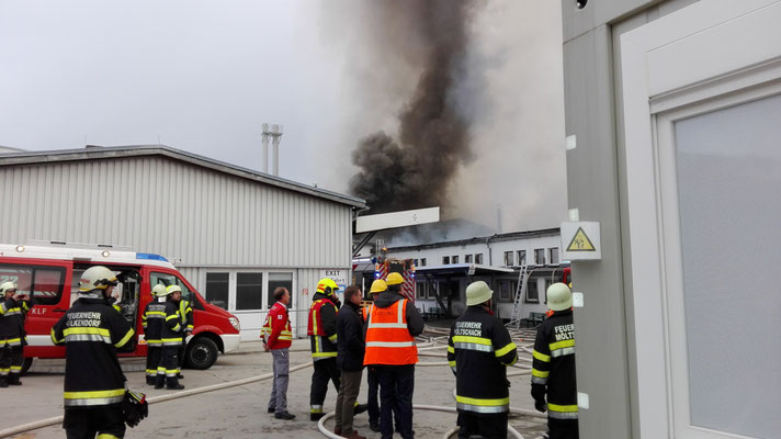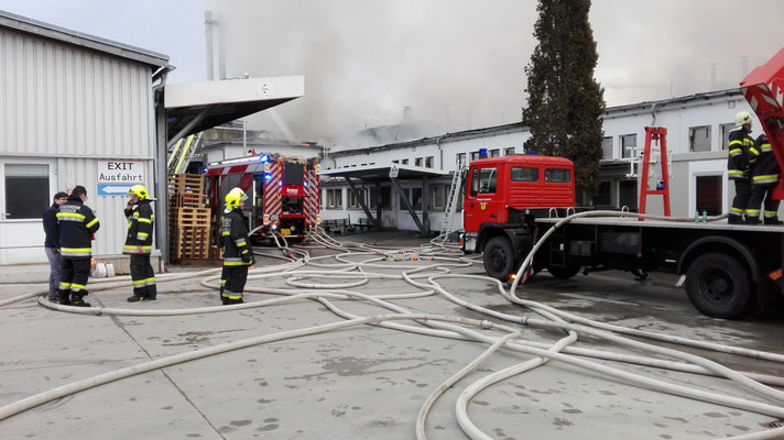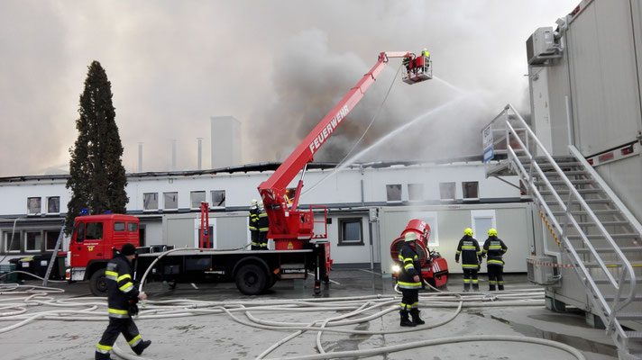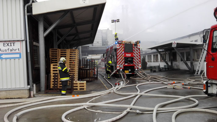 Die Aufgaben der FF Wernberg bestanden in der Löschwasserverteilung mit TLFA und ATS Angriff vom Dach und in der Halle.