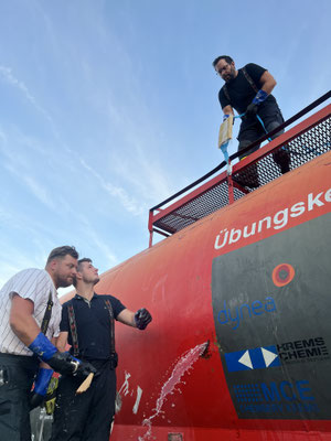 VILLACH. Beübt wurde ein Gefahrenstoff-Austritt aus einem Waggon. Was im Einsatz nur mit Schutzanzügen möglich ist, wurde ausnahmsweise im T-Shirt beübt. Vielen Dank an die Hauptfeuerwache Villach für die wertvollen Tipps. Ebenso bei der Übung dabei waren die FF Landskron und die FF Zauchen.